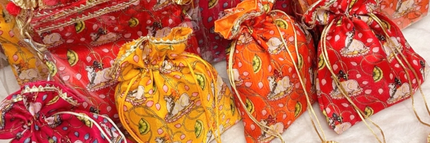 1) Handmade Cotton Potli with Metal Urli Diya Set