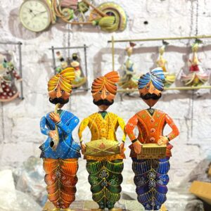 Handmade 24 Inch Rajasthani Musician Men Metal Statue Set of 3, Home Decor, Livingroom Decor